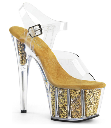 7″” (178mm) Heel, 2 3/4″” (70mm) Platform Ankle Strap Sandal w/ Glitter Inserts In the Platform Bottom